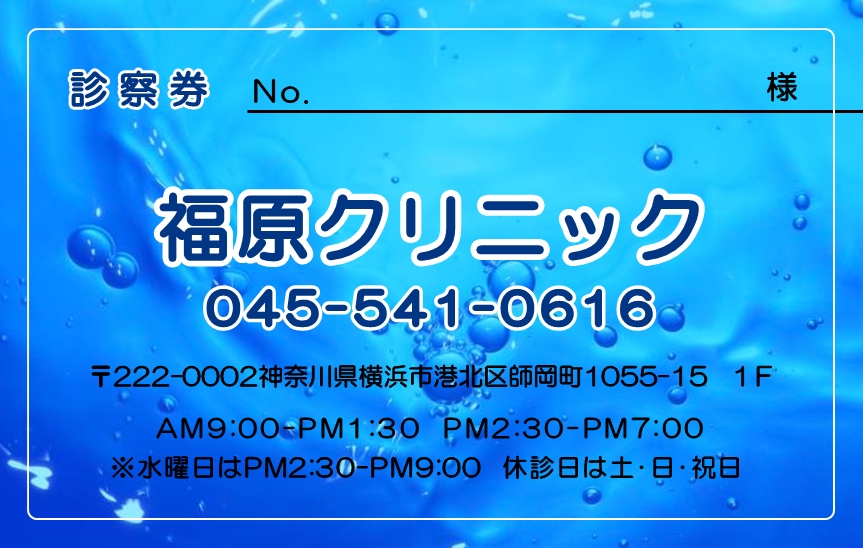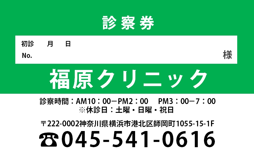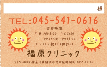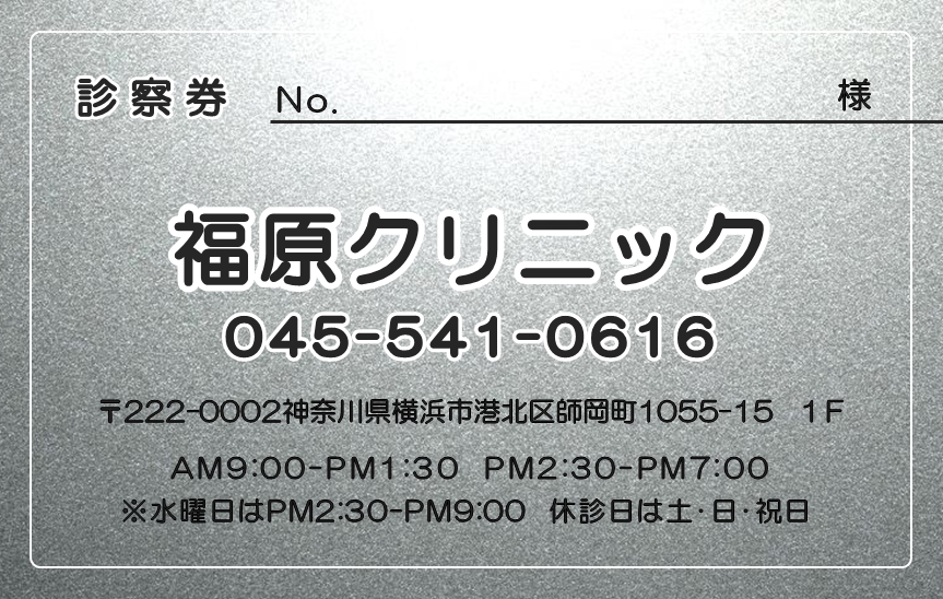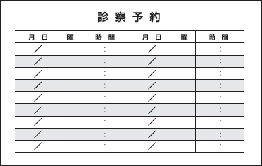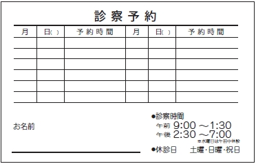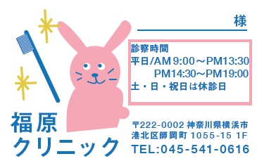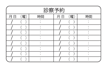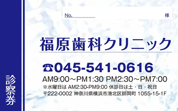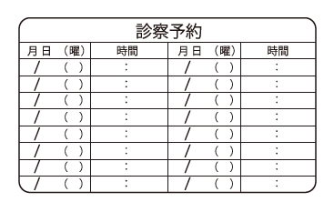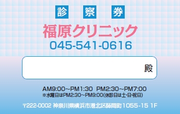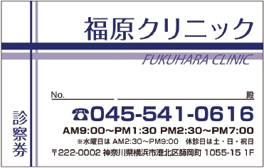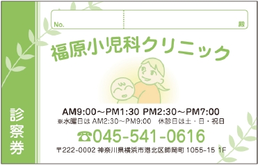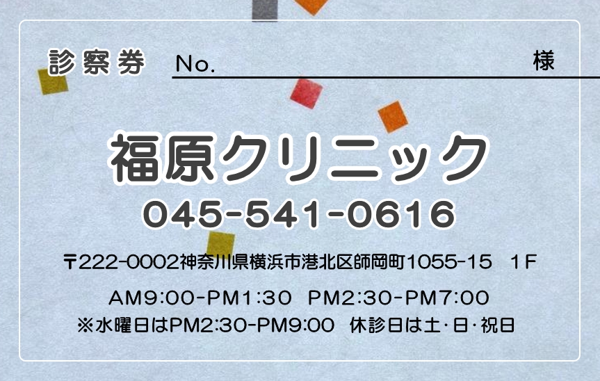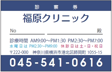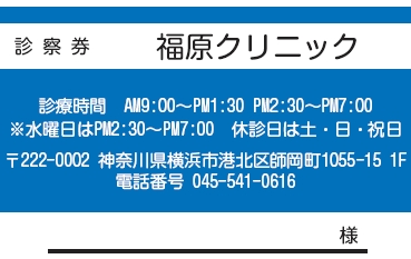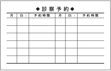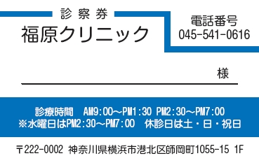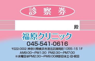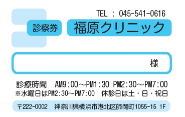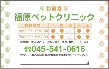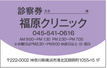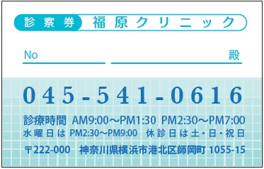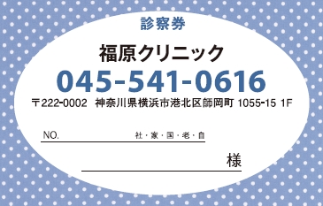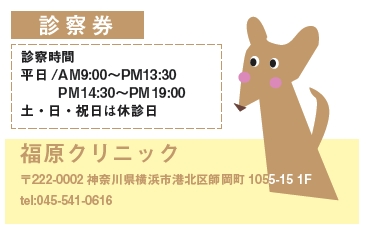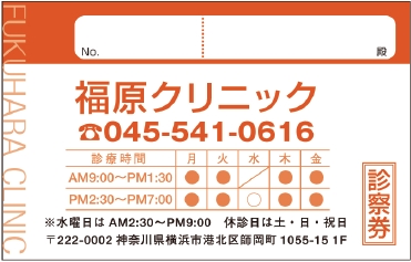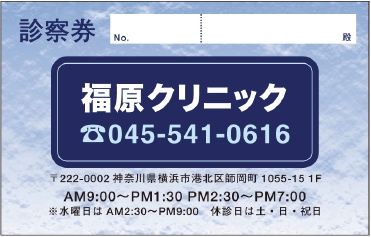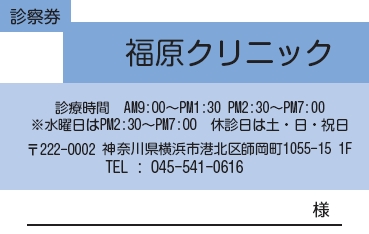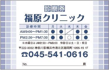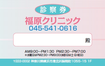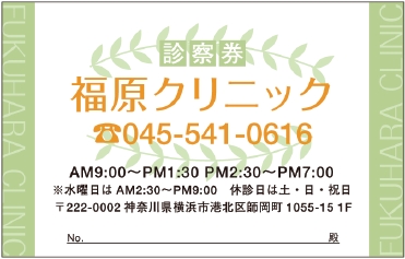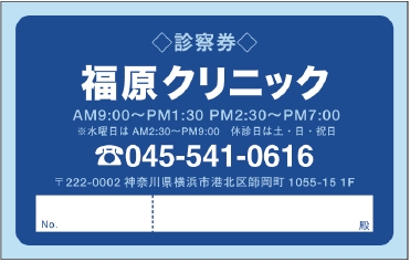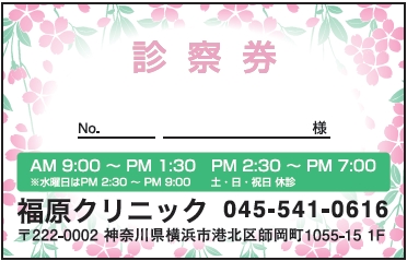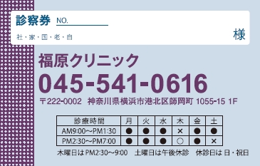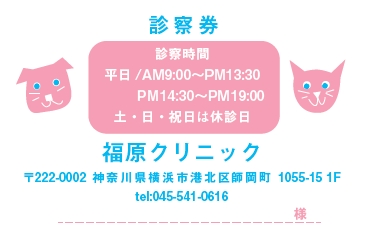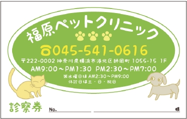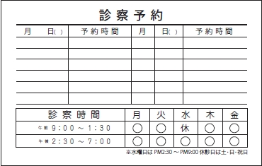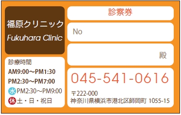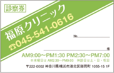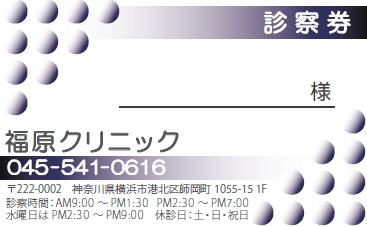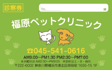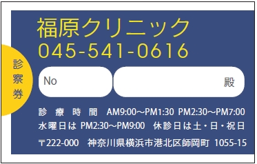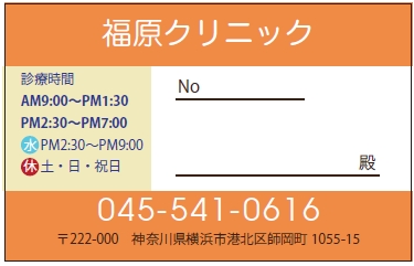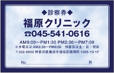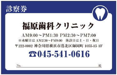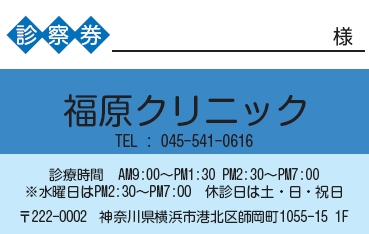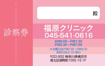 ※当社に許可(許可証)なく、診察券のデザインの一部または全てを複写・転用・利用することは一切禁止です。上記デザインは当社の著作権により完全に保護されております。例えば、これらデザインの一部または全てを他社で印刷・製作される事も著作権法違反になる可能性がございますので、十分ご注意ください。