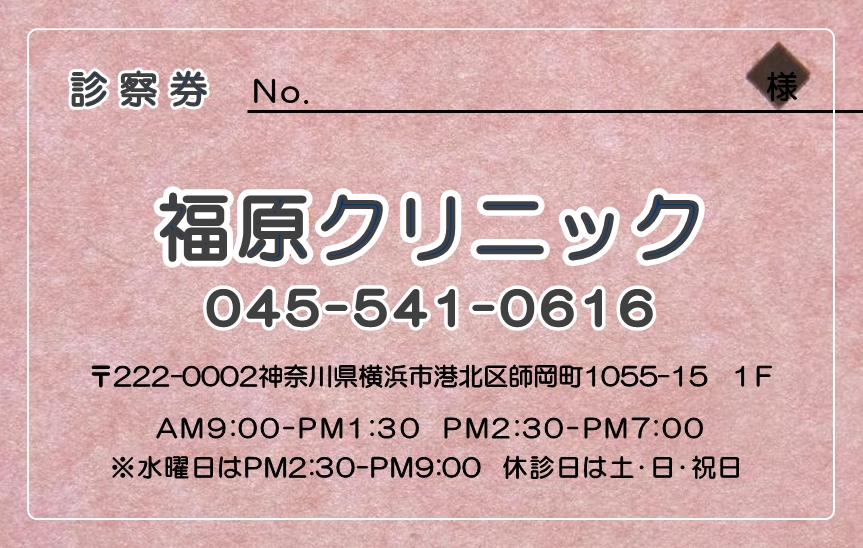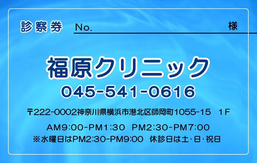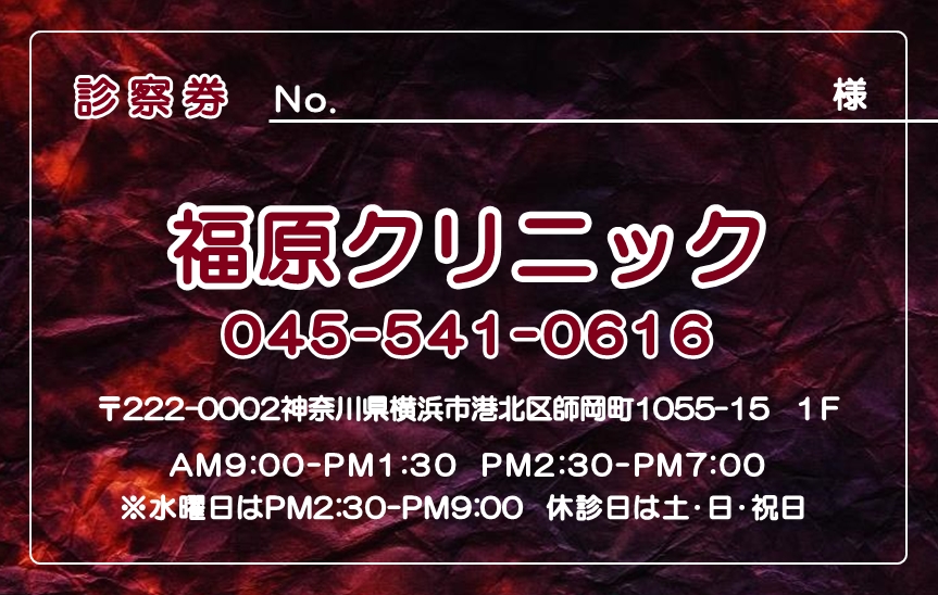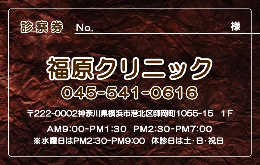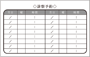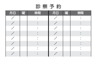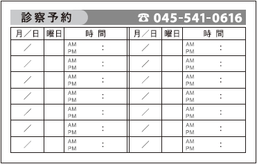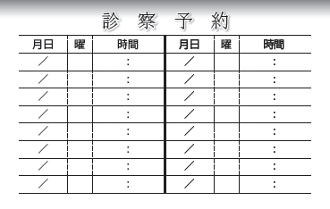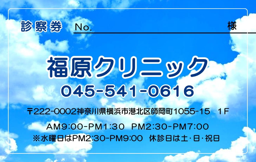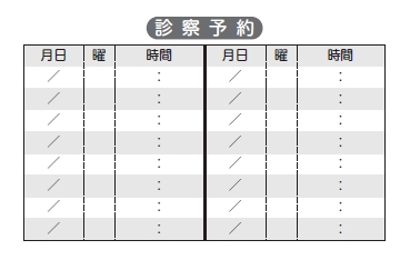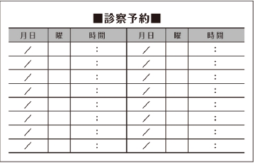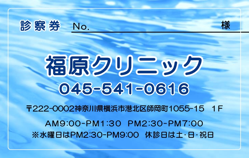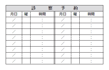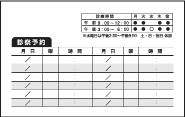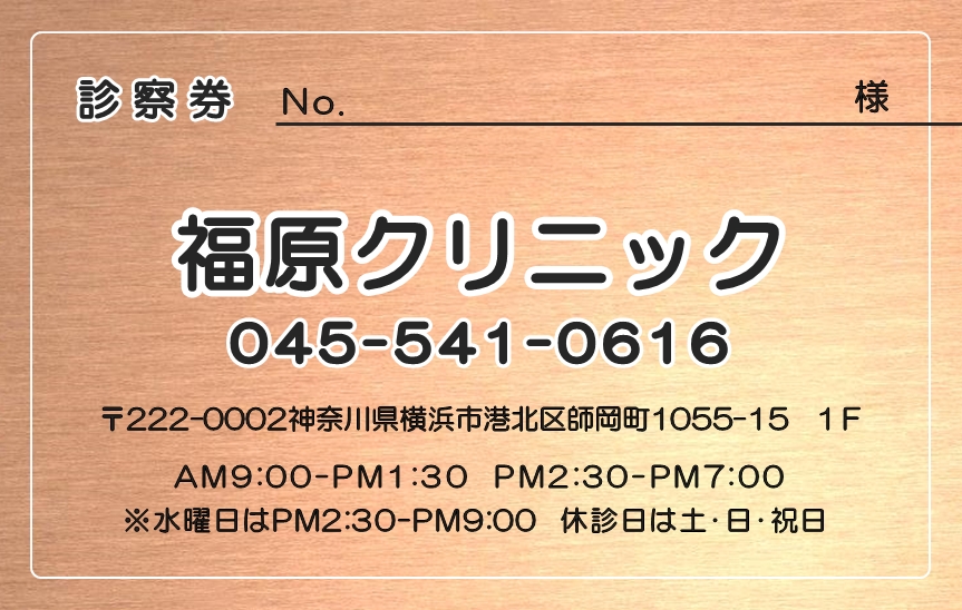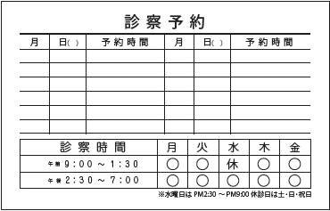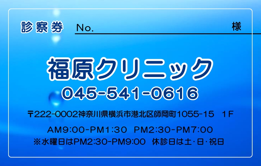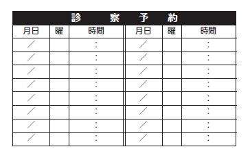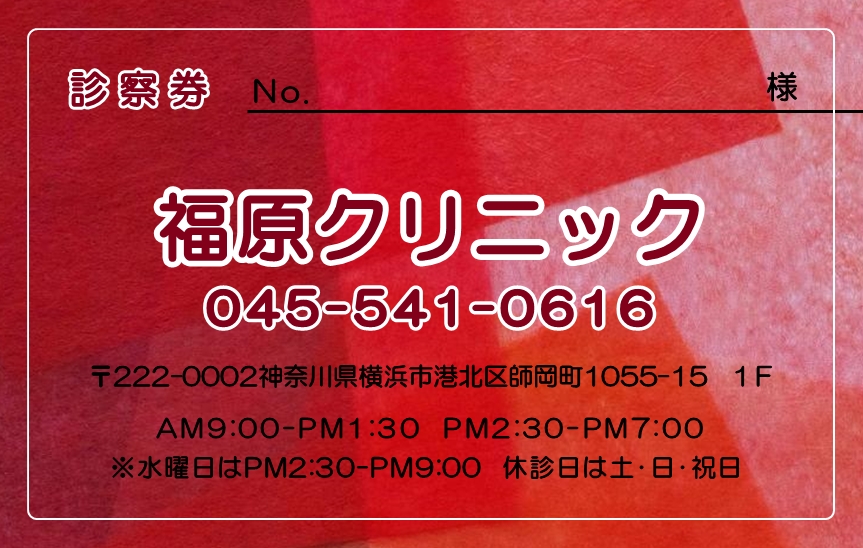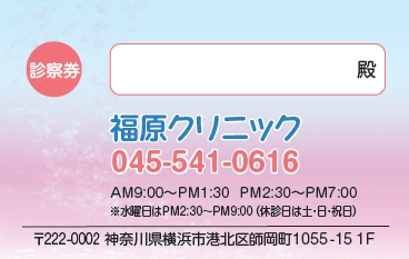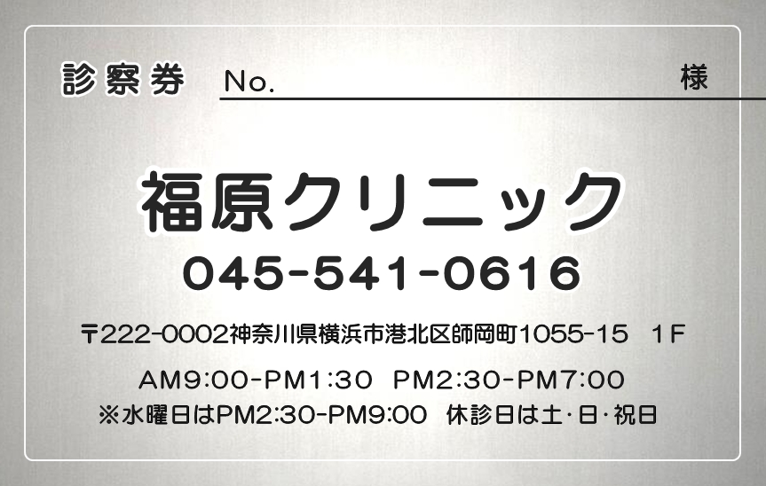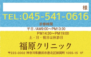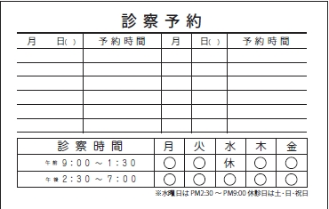 ※当社に許可(許可証)なく、診察券のデザインの一部または全てを複写・転用・利用することは一切禁止です。上記デザインは当社の著作権により完全に保護されております。例えば、これらデザインの一部または全てを他社で印刷・製作される事も著作権法違反になる可能性がございますので、十分ご注意ください。