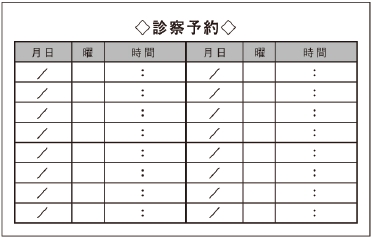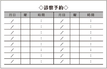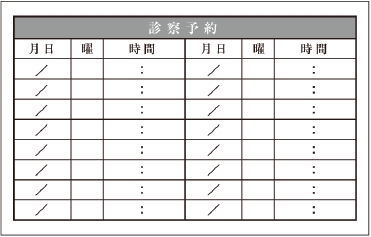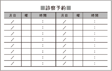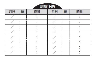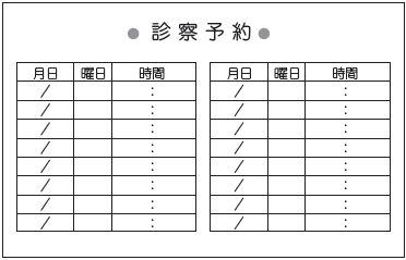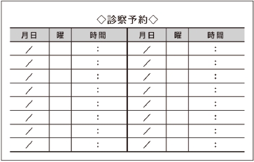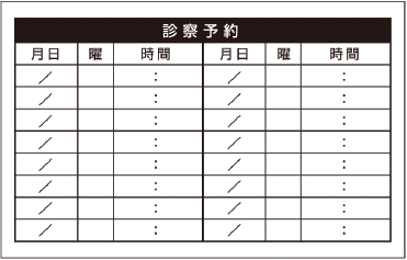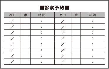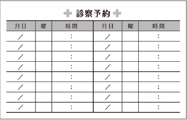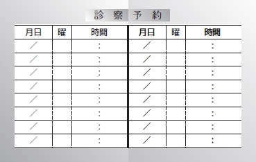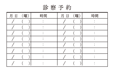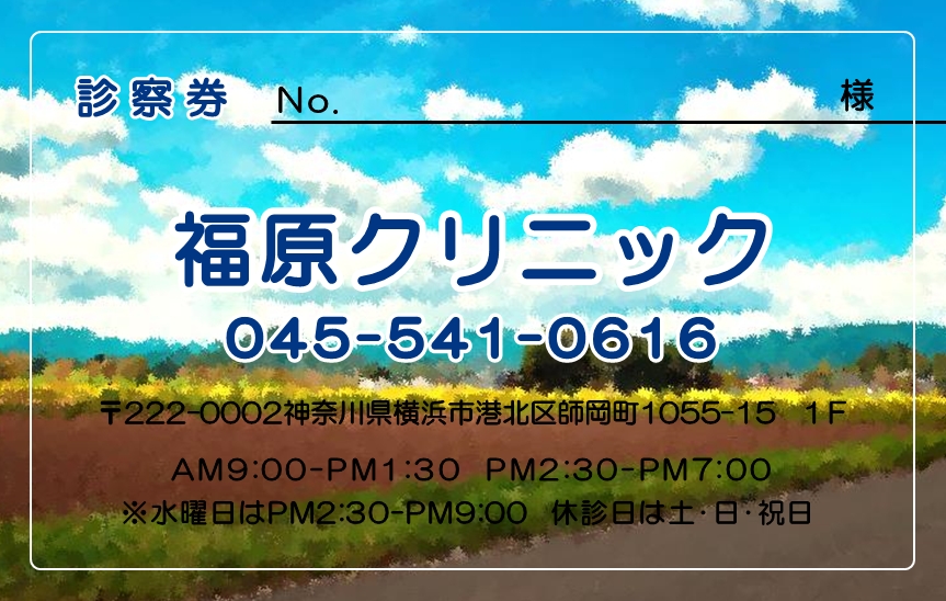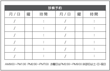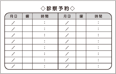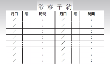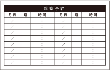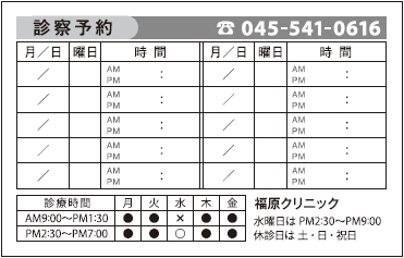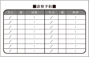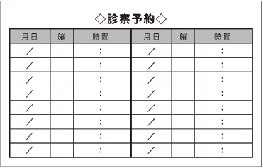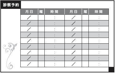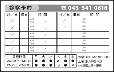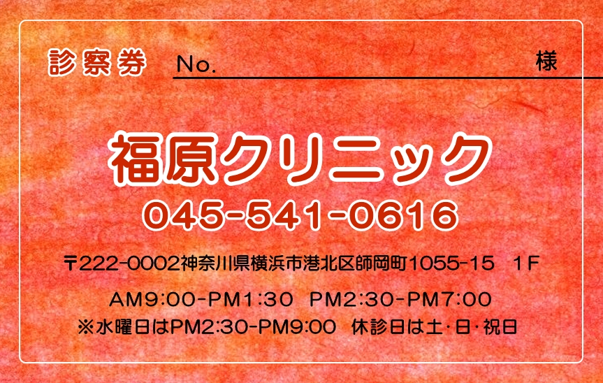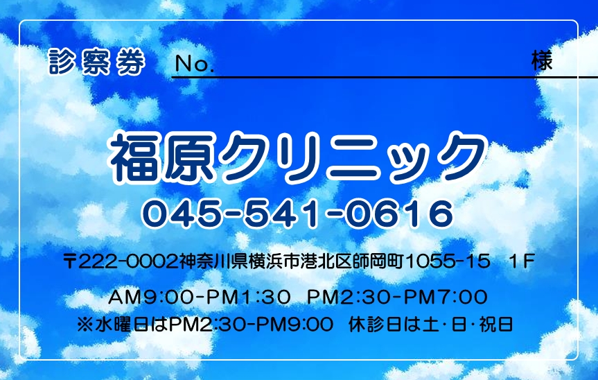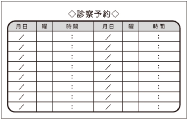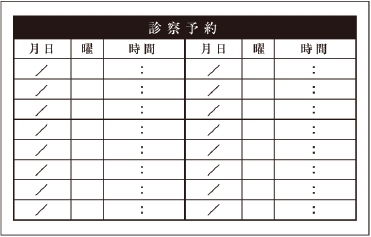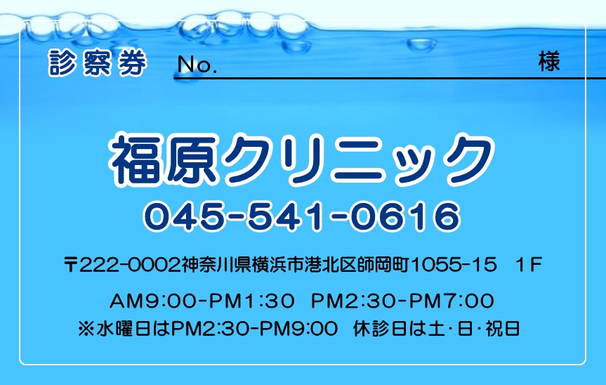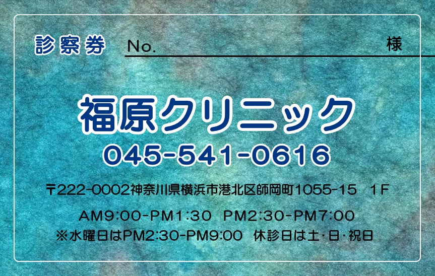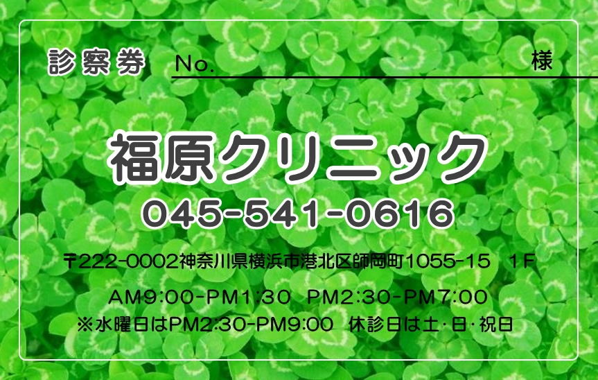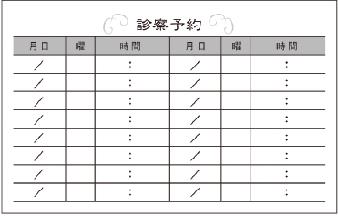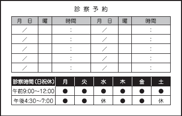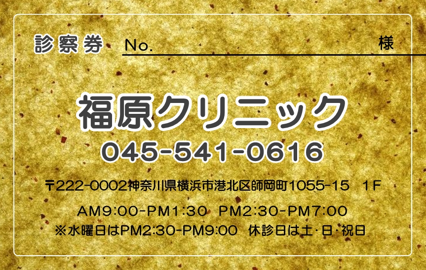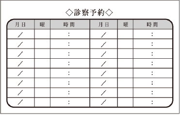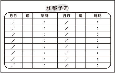 ※当社に許可(許可証)なく、診察券のデザインの一部または全てを複写・転用・利用することは一切禁止です。上記デザインは当社の著作権により完全に保護されております。例えば、これらデザインの一部または全てを他社で印刷・製作される事も著作権法違反になる可能性がございますので、十分ご注意ください。