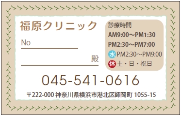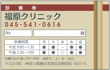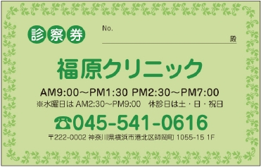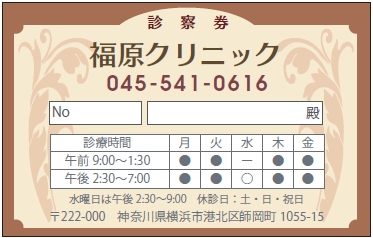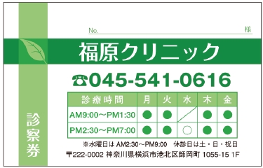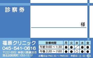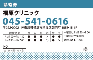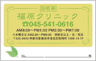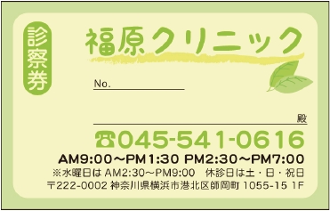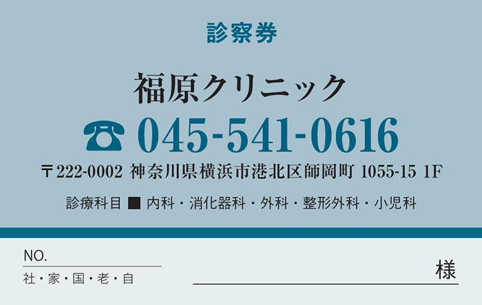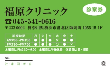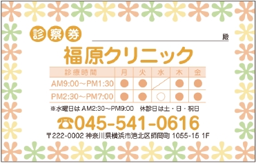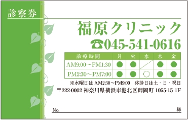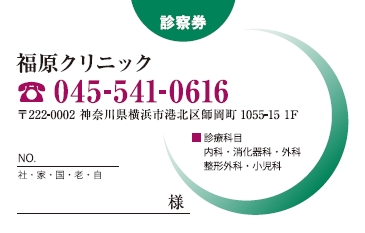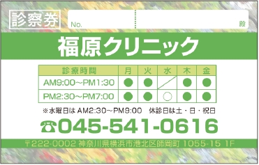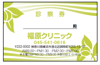診察券サンプルデザイン一覧